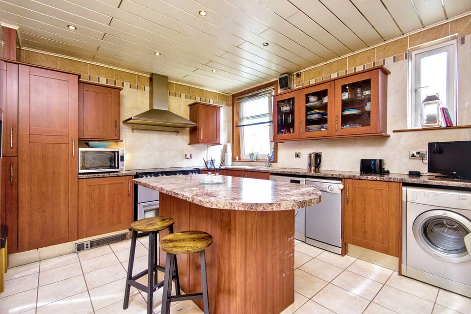Well-appointed kitchen with space for dining and fitted with a gas cooker (included in the sale)