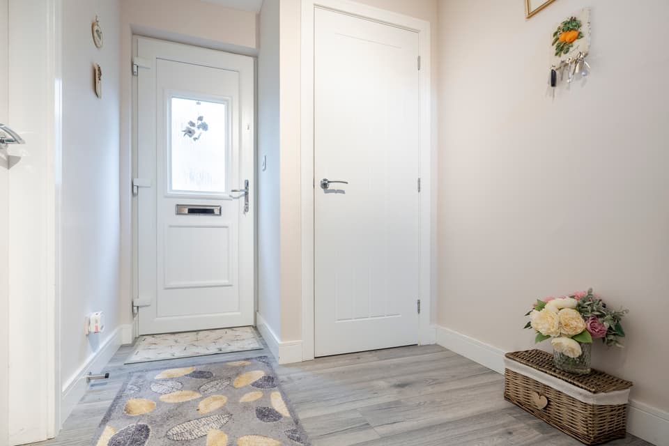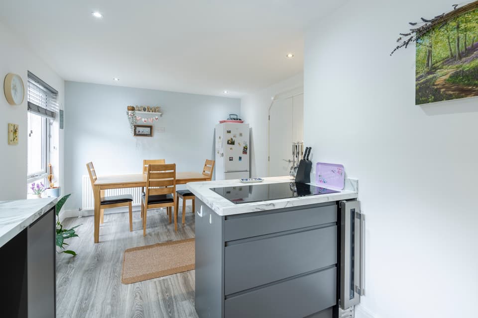 The property, which is immaculately presented throughout, comprises: entrance hallway with storage and WC, a bright and airy lounge, dining kitchen with a range of modern wall and base units, integrated double oven and induction hob, a contemporary bathroom with three-piece suite and shower over bath and three spacious double bedrooms, all benefitting from integrated storage.