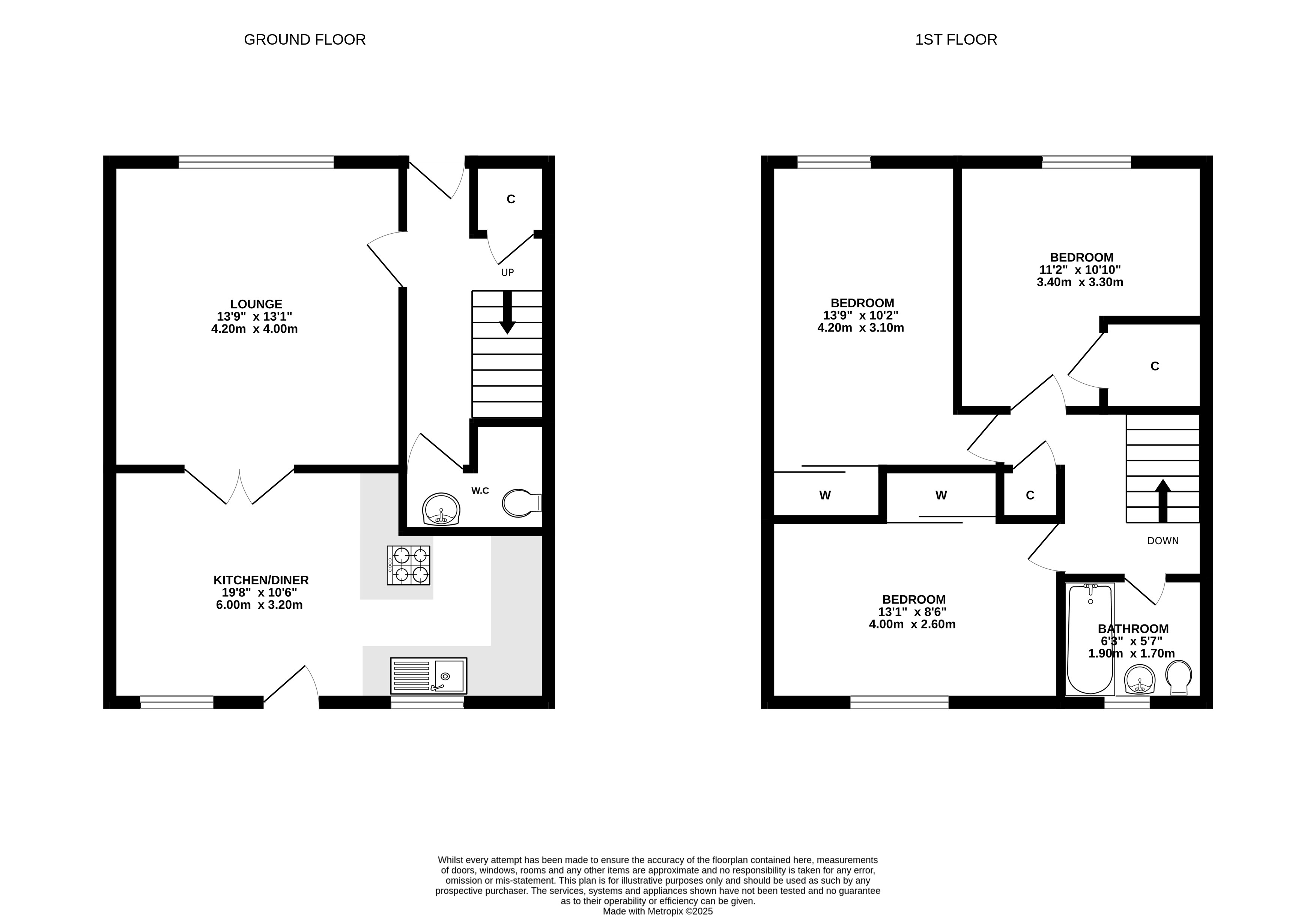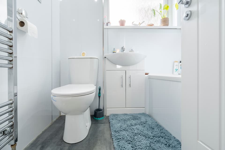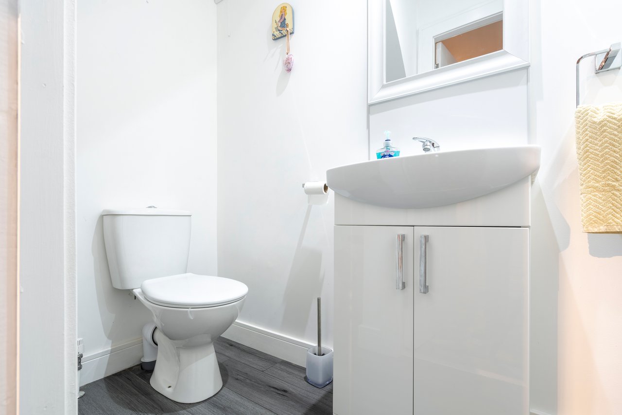 Bathroom with 3 piece suite and shower over bath, Separate downstairs WC