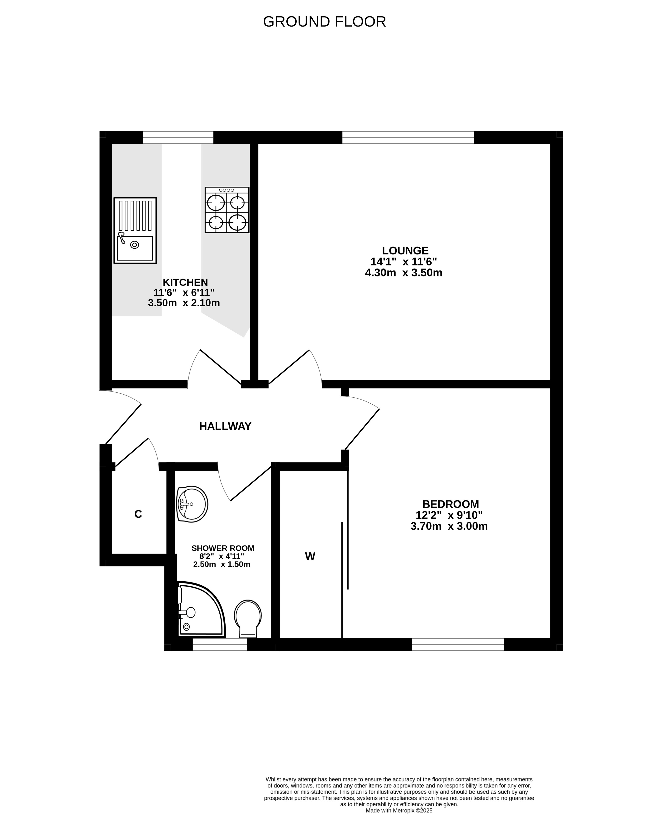 - Shower Room: 8' 2" x 4' 11" (2.49m x 1.50m)