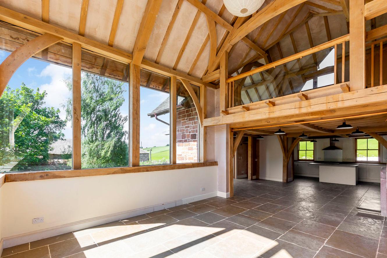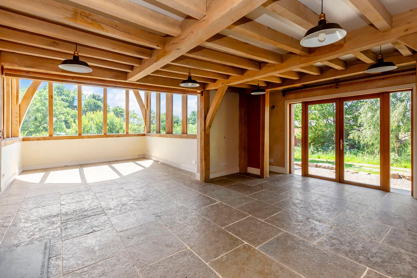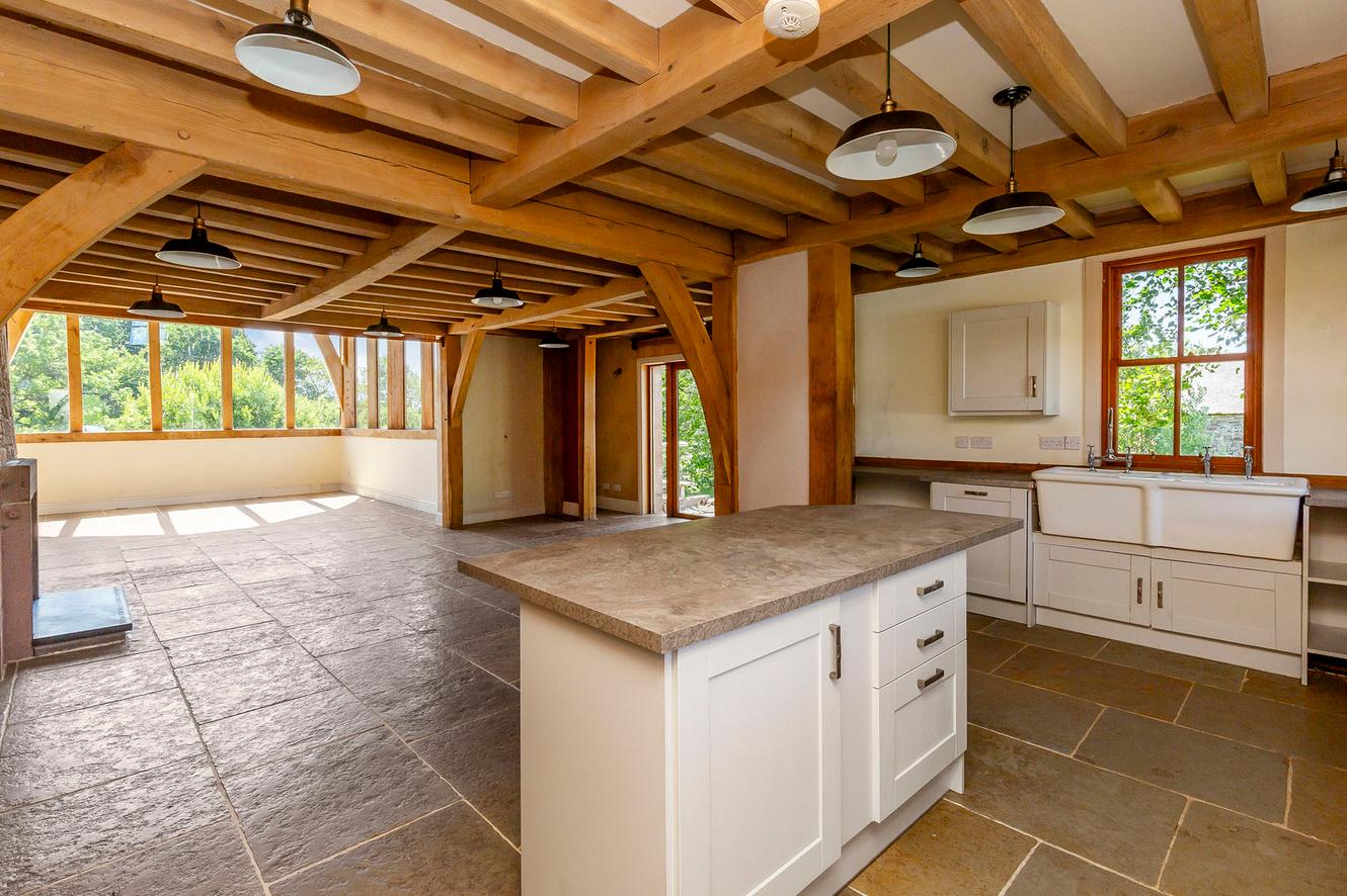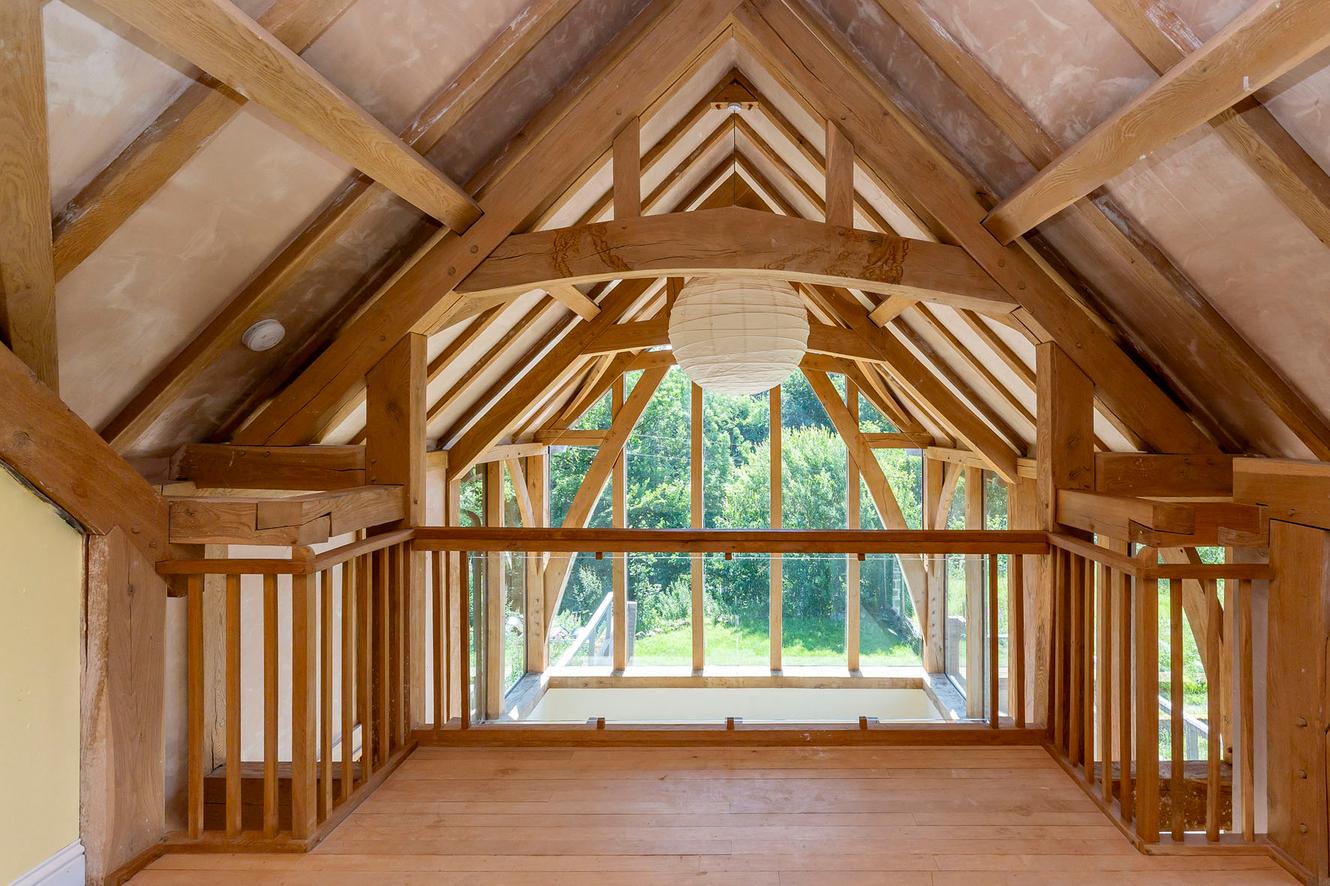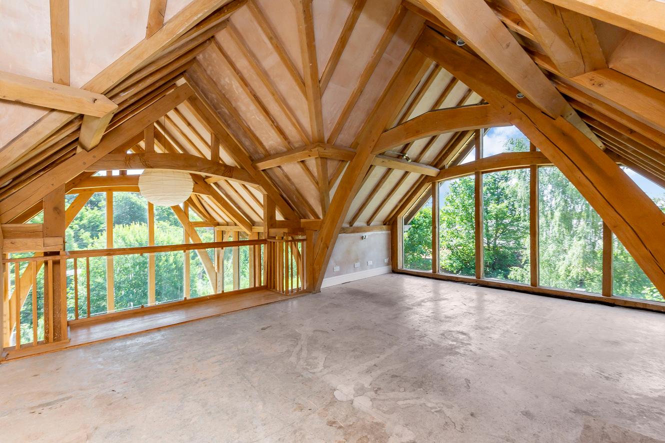 The four bedrooms are all spacious doubles with inspiring country and tree-lined views. All the rooms continue the charm of exposed wooden ceiling beams and all (except bedroom three) have dual-aspect windows as well, to make the most of the views whilst adding to the light and airy ambience. The principal and second bedrooms are on the first floor, off a landing lit by skylights, with bedrooms three and four easily accessible on the ground floor.