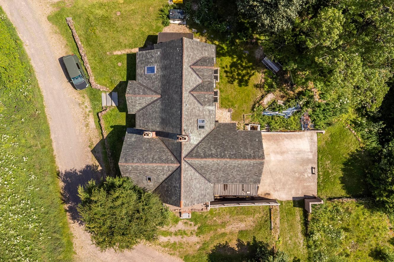 Mature gardens wraparound the entirety of the property, providing neat lawns from which to admire the country panorama. The rear garden has the added advantage of a southeast-facing aspect, capturing an abundance of sun throughout the day. Also to the rear, there is a private driveway leading to a massive professional workshop/integral garage, which has 3-phase wiring, space for multiple vehicles, storage, and convenient access to the hall of the lower ground floor. It is an impressive space that offers a wealth possibilities.
