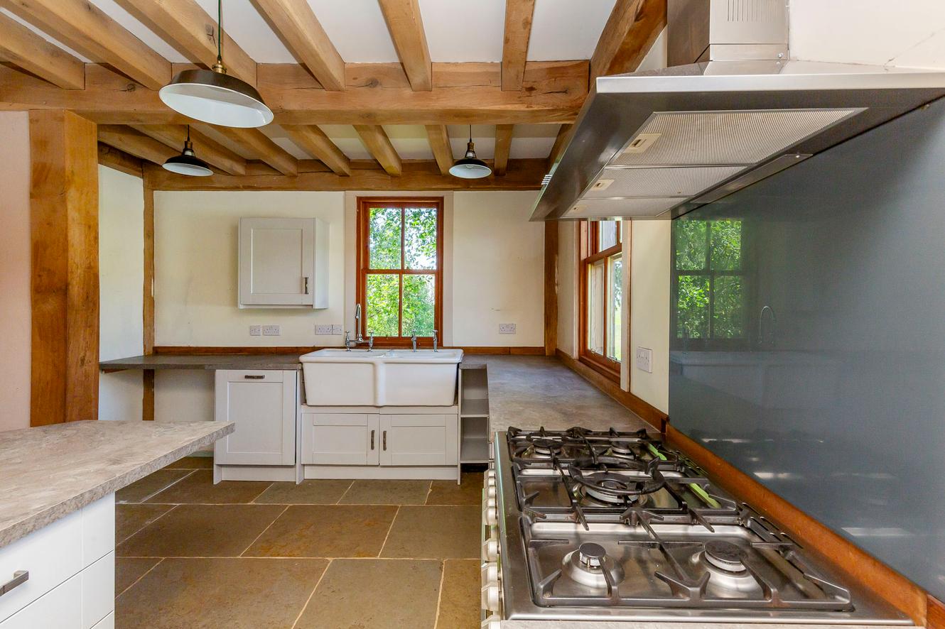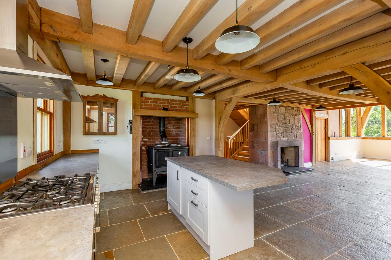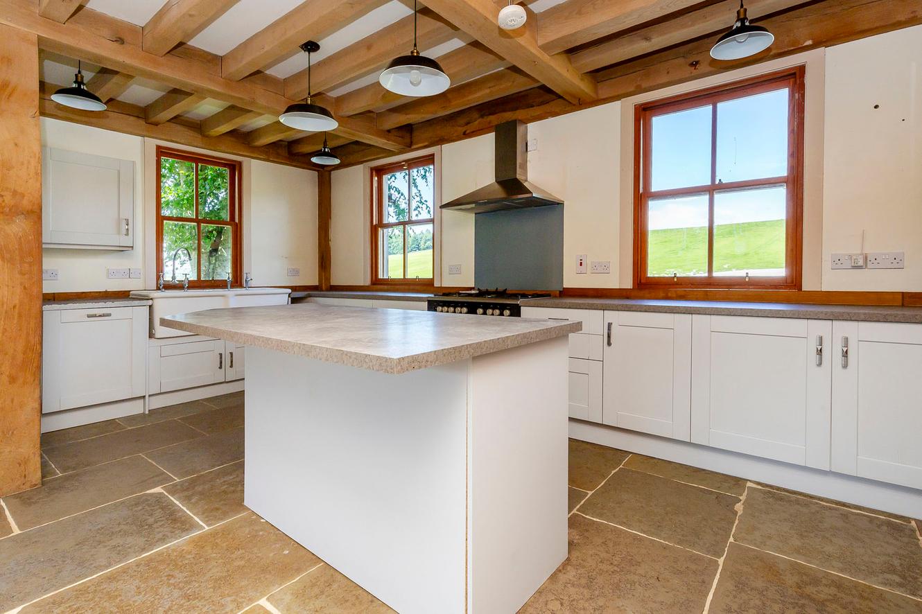 Extras: all light fittings, gas range cooker, Esse Ironheart solid fuel cooker, and integrated dishwasher to be included in the sale.