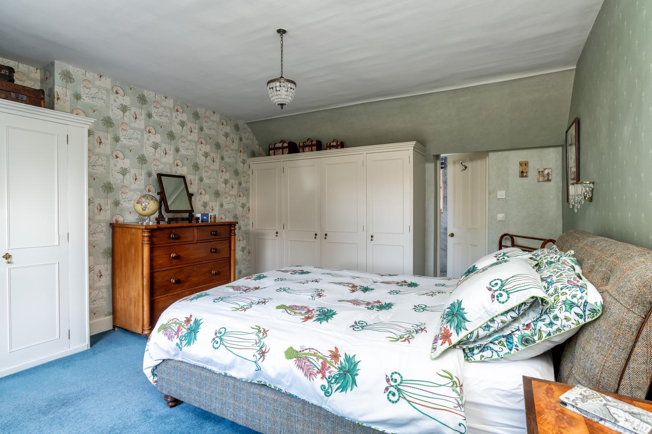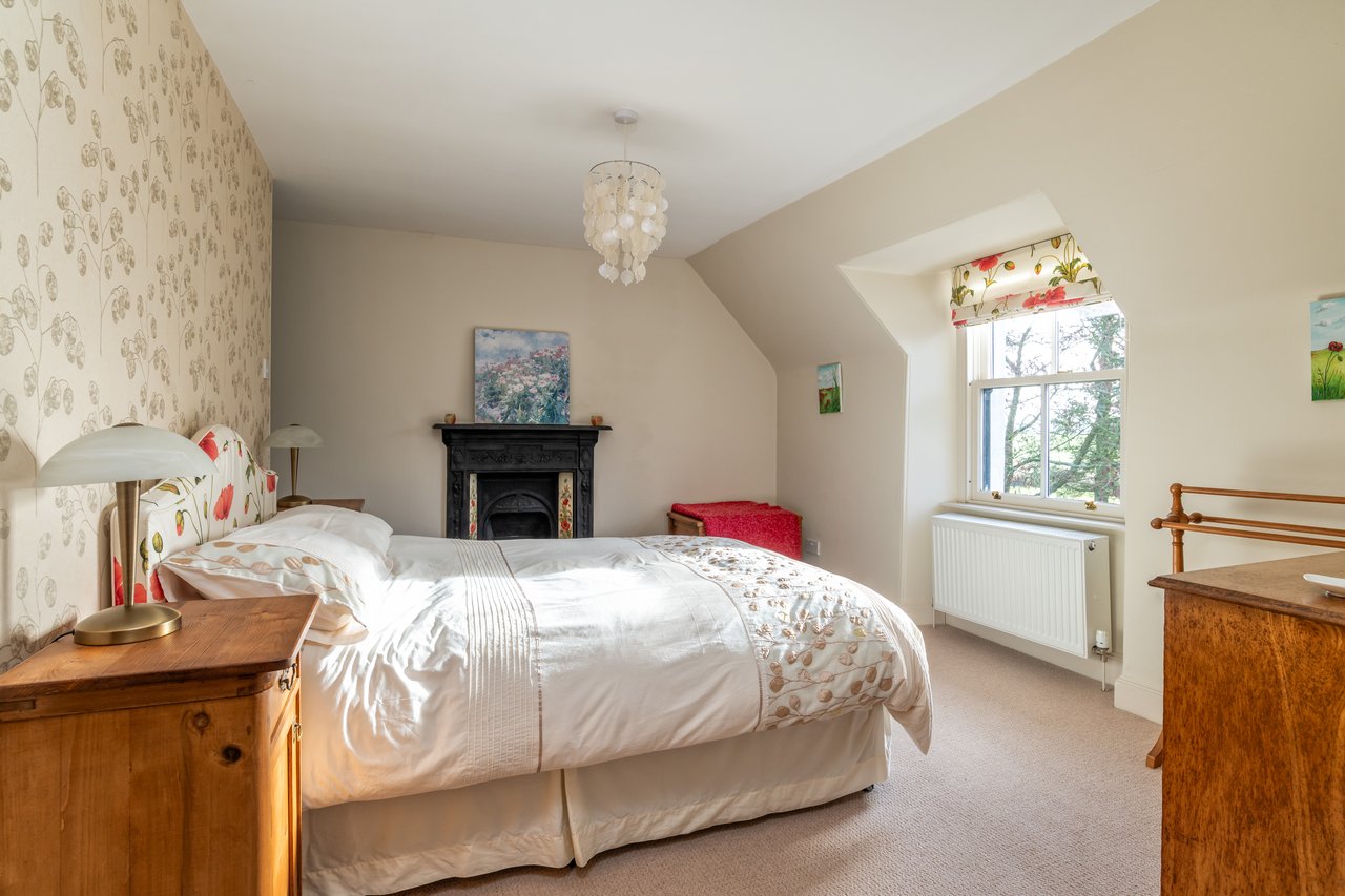 The upper floor divides into two wings, offering excellent family accommodation. Four charming front facing bedrooms include the largest with a working fireplace and stylish en suite. The luxurious family bathroom features a freestanding double bath, walk in shower and underfloor heating. The principal bedroom suite offers generous fitted walk in storage and an upgraded en suite.