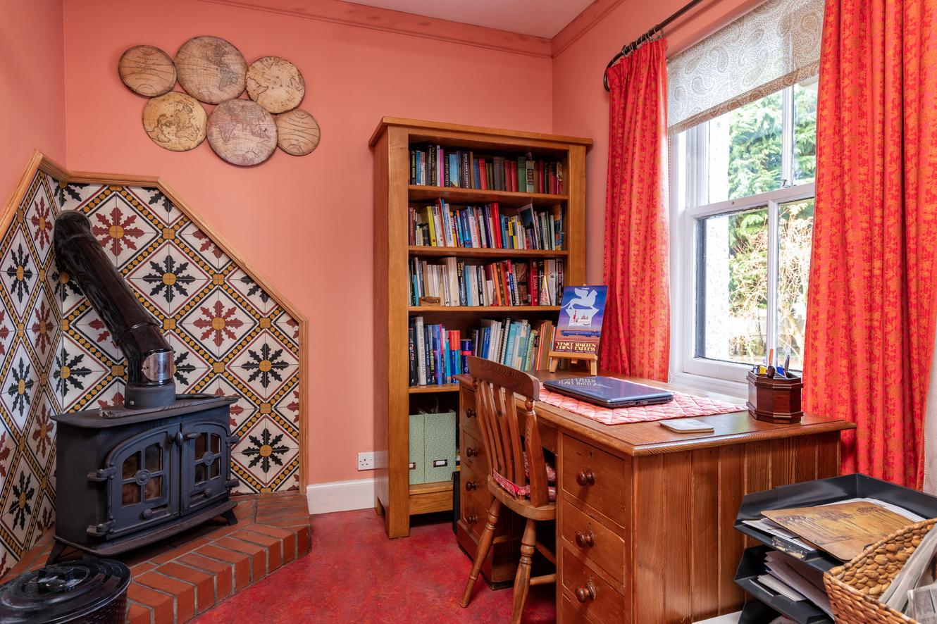 The first floor is thoughtfully arranged into two wings, offering excellent family accommodation. Four charming front-facing bedrooms include the principal suite, which benefits from a working fireplace, walk-in storage, and a stylish upgraded en suite. The luxurious family bathroom features a freestanding double bath, walk-in shower, and underfloor heating.