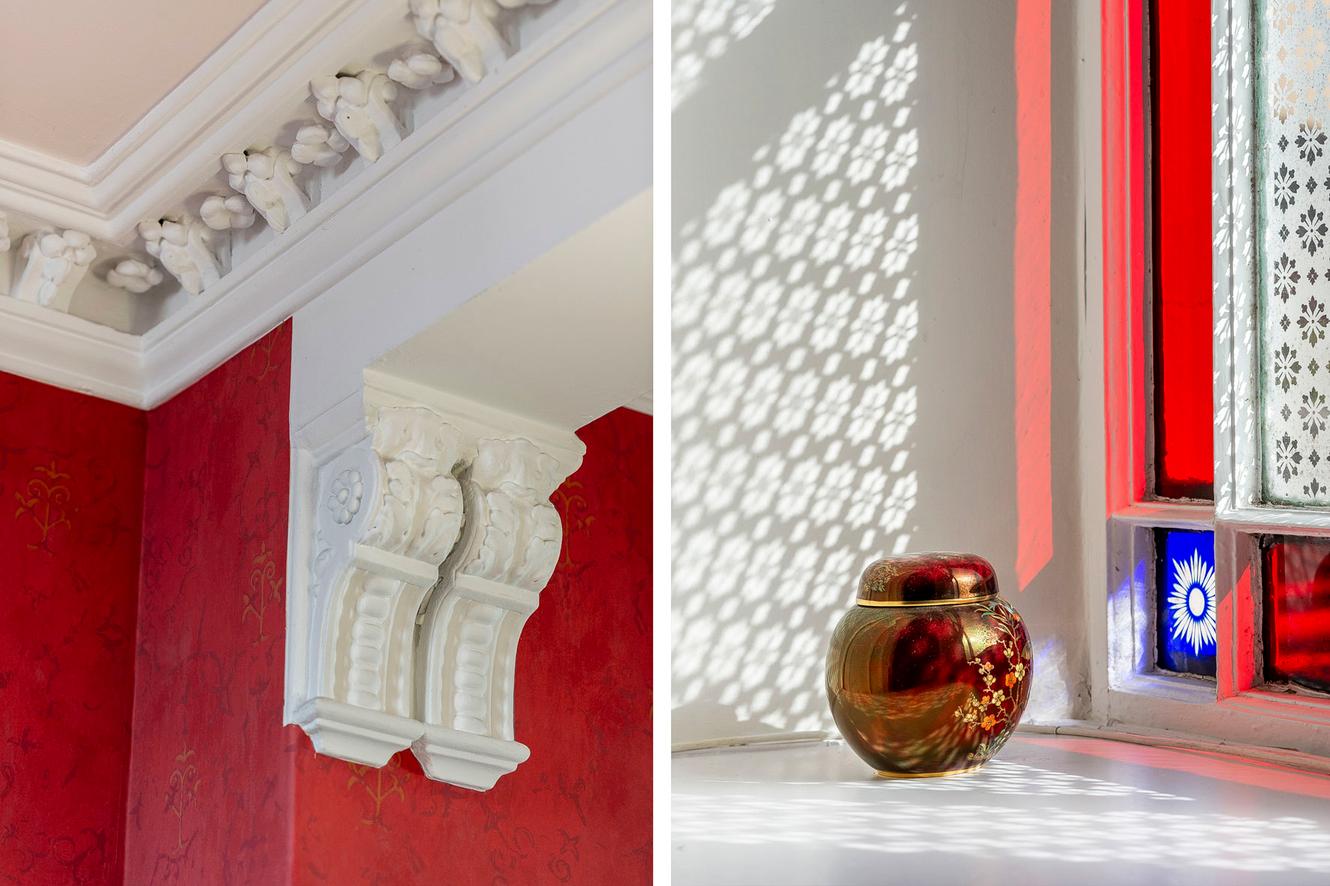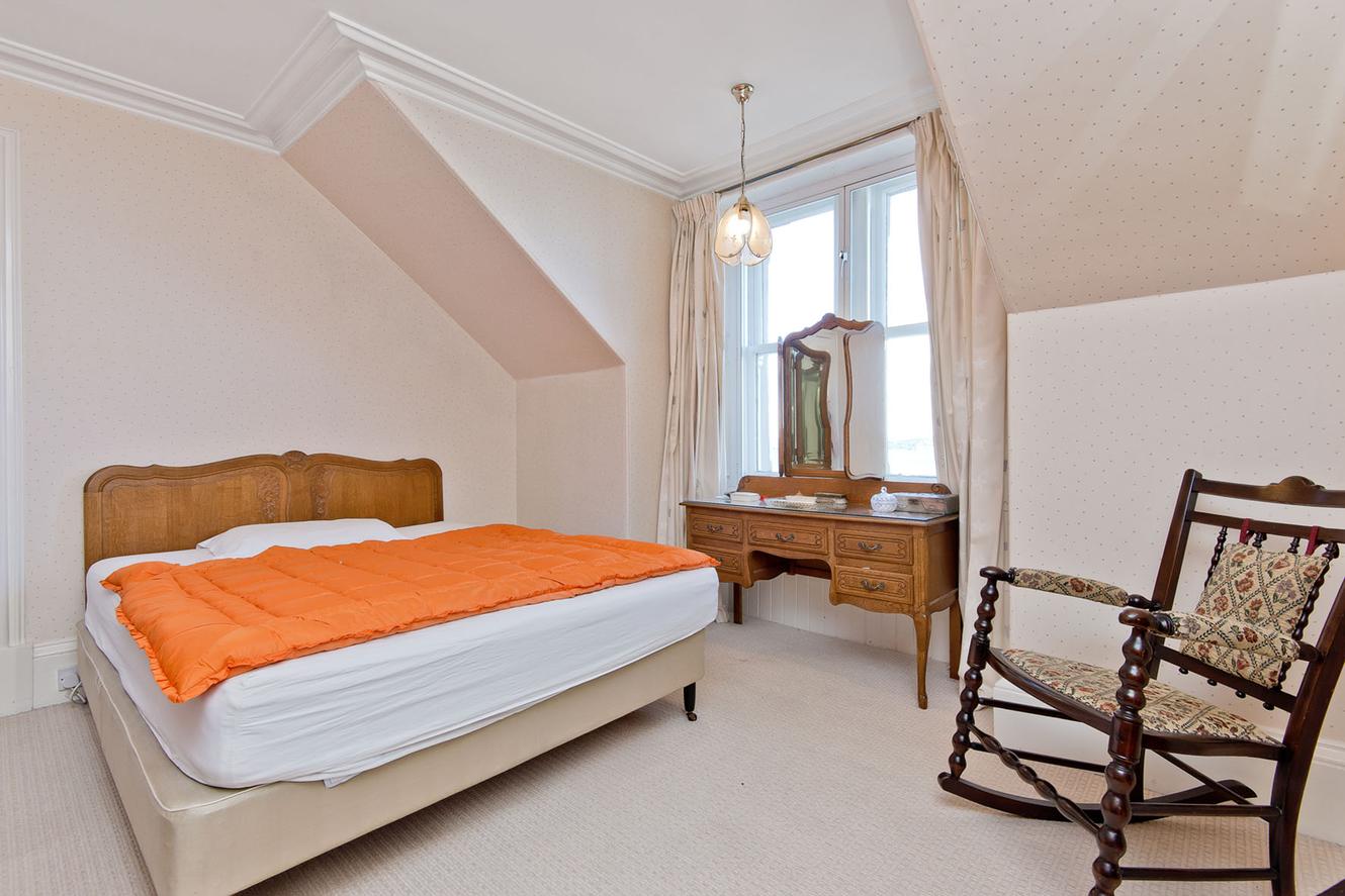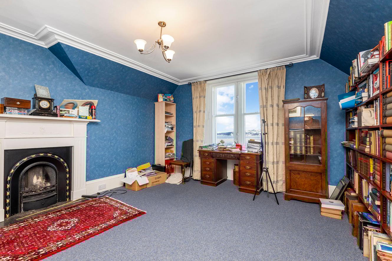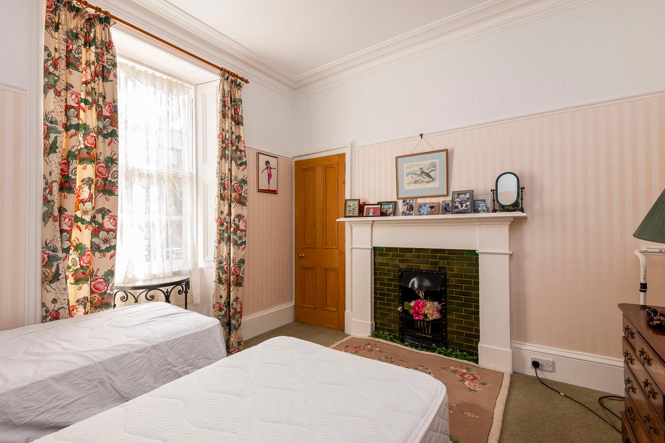 The home’s four carpeted bedrooms are comfortable doubles, each enhanced by classic cornicing and period fireplaces. One bedroom, southerly facing with built-in storage, is located downstairs, offering flexibility for additional living space. The remaining bedrooms are situated on the first floor, accessible via a staircase lit by a generous window with colourful stained-glass edging. This staircase leads to a light and airy landing with a study area and built-in storage. Two first-floor bedrooms, including the principal, enjoy the serenity of open river views and there is also a sky-lit box room - perfect for storage, a dressing room, or a study.