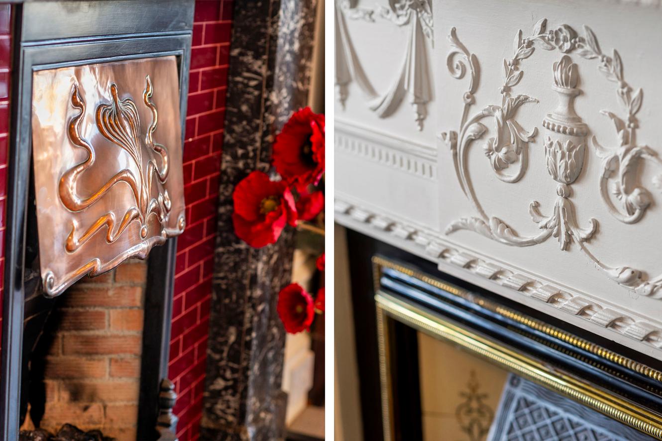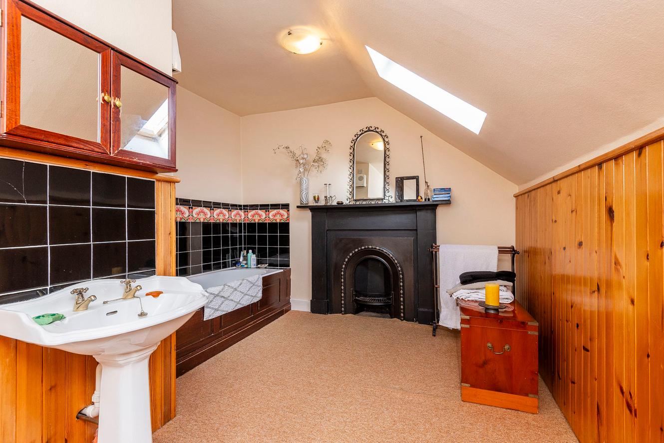 The ground floor features a handy shower room off the utility room, while the upstairs family bathroom has a bath beside a striking original fireplace.