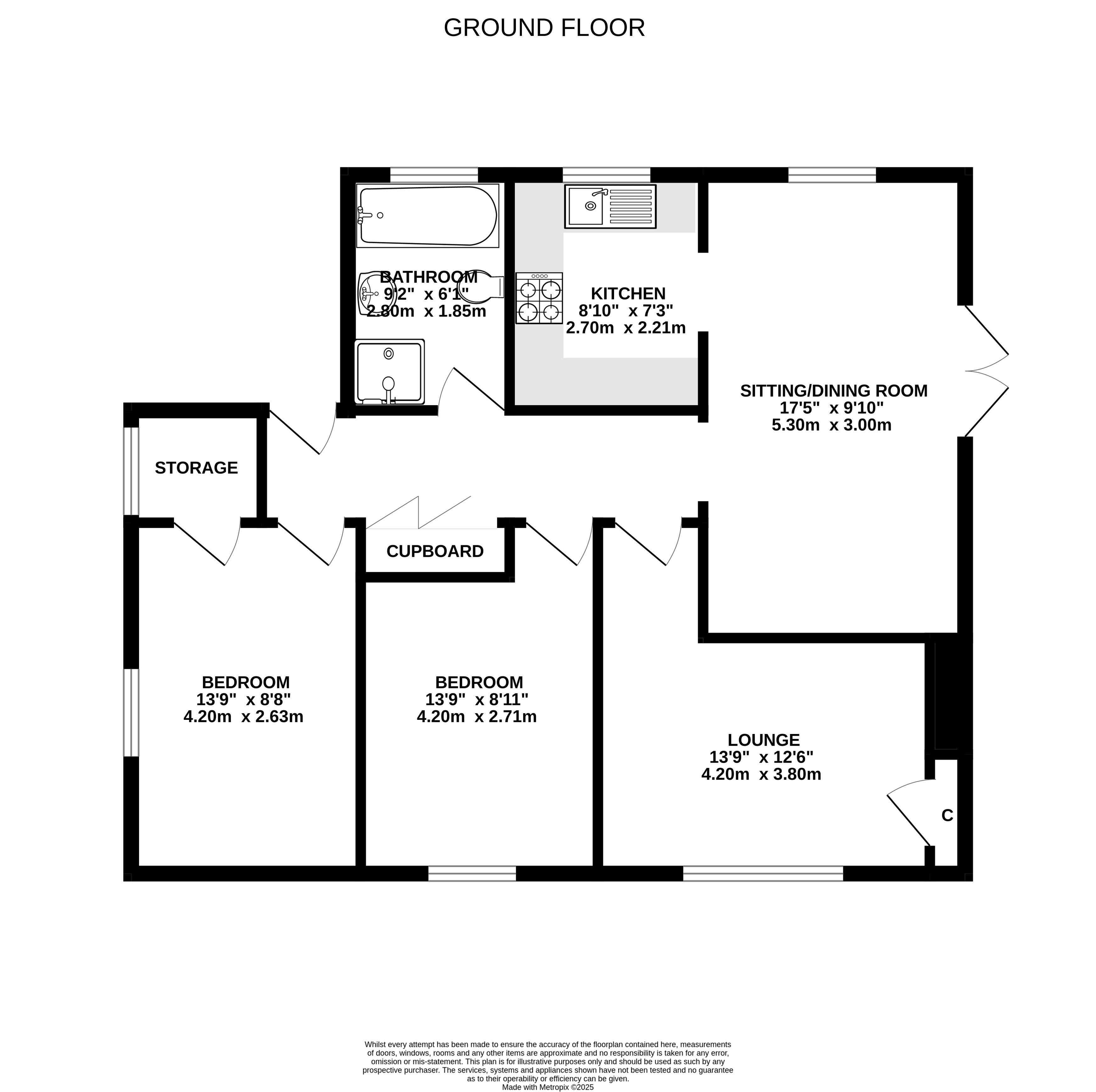 The accommodation comprises: spacious and bright lounge with patio door to garden area, kitchen with a range of fitted units, bathroom with four-piece suite and two double bedrooms.