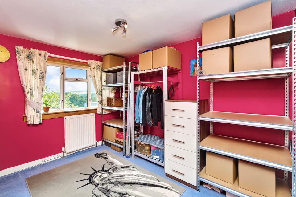 Extras: all fitted floor and window coverings, light fittings, an integrated oven and gas hob, a freestanding fridge/freezer, a washing machine, a single bed with mattress, and two large storage units and racking in the garage to be included.