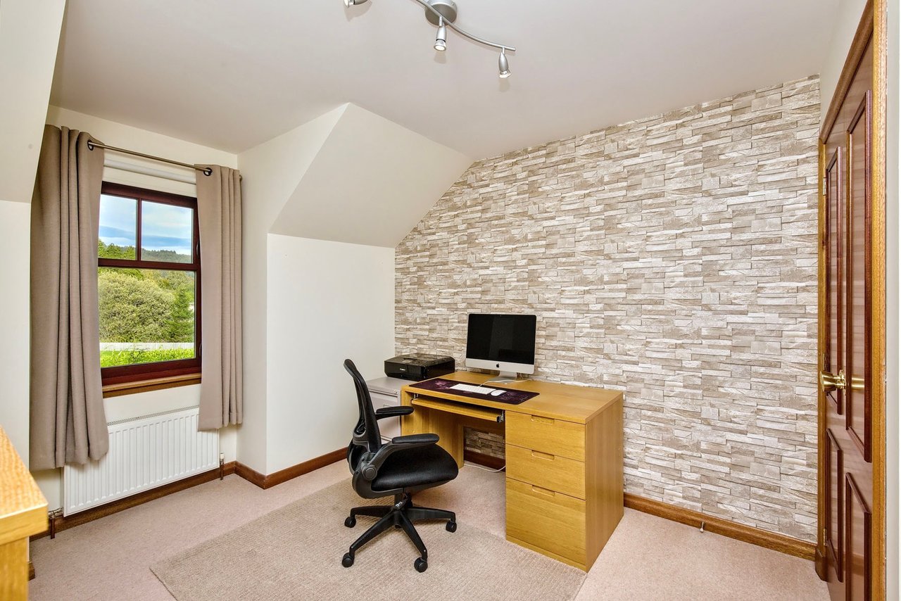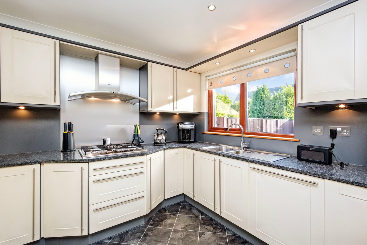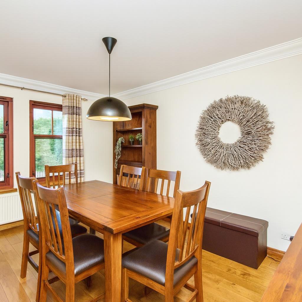 Peacefully situated in the popular village of Bridge of Earn, this spacious detached house offers versatile accommodation which is well presented with attractive, modern interiors. The airy accommodation consists of: a generous living room with a fireplace; a formal dining room, a south-facing dining kitchen with an open plan layout to the sun room; a snug; five attractive bedrooms with four benefiting from built-in wardrobes and two from en suites; completing this magnificent family home is a four piece bathroom on the first floor and a convenient utility room and WC on the ground floor. Externally, this property offers its new owners private gardens and parking.