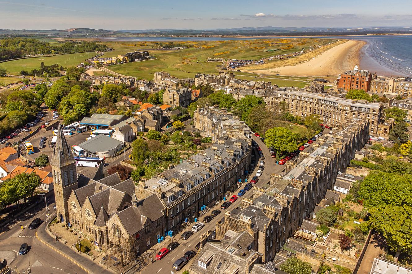 World-renowned for its ancient university, golfing heritage and stunning beach, St Andrews attracts more than half a million visitors each year, and is regarded as one of the finest towns and best places to live in Scotland. Characterised by its narrow cobbled streets and beautiful architecture, the bustling town centre hosts a charming blend of independent shops and high-street retailers, plus diverse cafes, coffee shops, delis, greengrocers, butchers and bakeries. There are also several large supermarkets on the outskirts of the town. St Andrews enjoys international fame as ‘The Home of Golf’ – the game has been played at St Andrews Links for over 600 years, and the iconic Old Course draws thousands of professionals, amateurs and spectators from across the globe. Other tourist attractions include the 12th and 13th-century ruins of St Andrews Cathedral and St Andrews Castle, as well as St Andrews Botanic Garden. Excellent state schools can be found nearby; private schooling options include a Montessori nursery and St Leonards School. Situated in the East Neuk of Fife, St Andrews is approximately 30 minutes’ drive from Dundee and 90 minutes’ drive from Glasgow and Edinburgh. Excellent local and intercity bus links serve the town; daily direct flights to London are available from Dundee airport.
