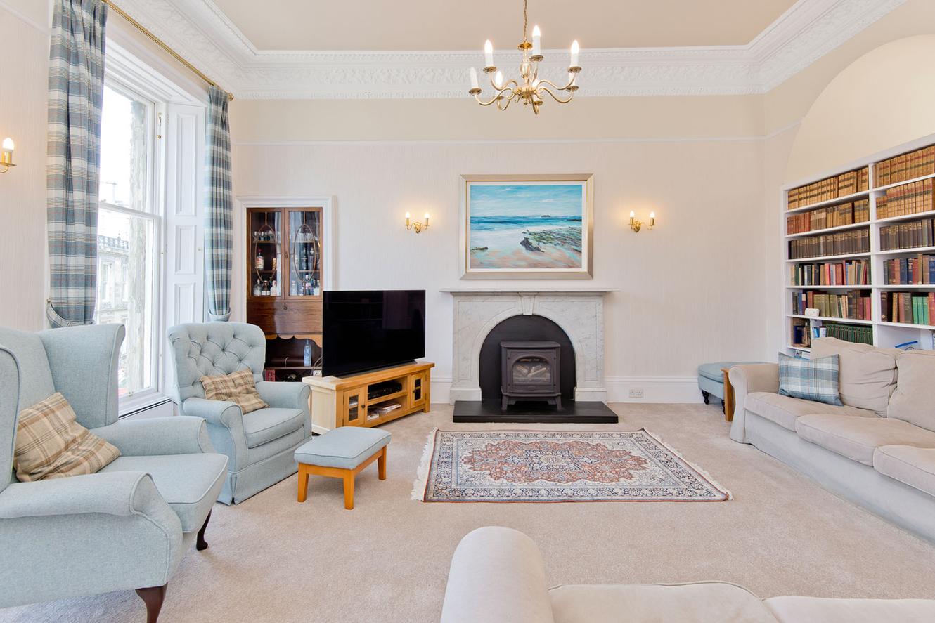 Situated in the heart of St Andrews, this five-bedroom, two-bathroom double upper flat occupies the top two floors of a mid-19th-century listed townhouse, showcasing space and character typical of the opulent Georgian era. Bright, high-ceilinged rooms retain beautiful, authentic features, thoughtfully paired with understated décor and sympathetic finishes, creating a wonderfully comfortable home that meets the evolving demands of modern family living. Central shops, a stunning sandy beachfront, world-renowned golfing, and excellent educational options are all within easy reach of this highly coveted location.