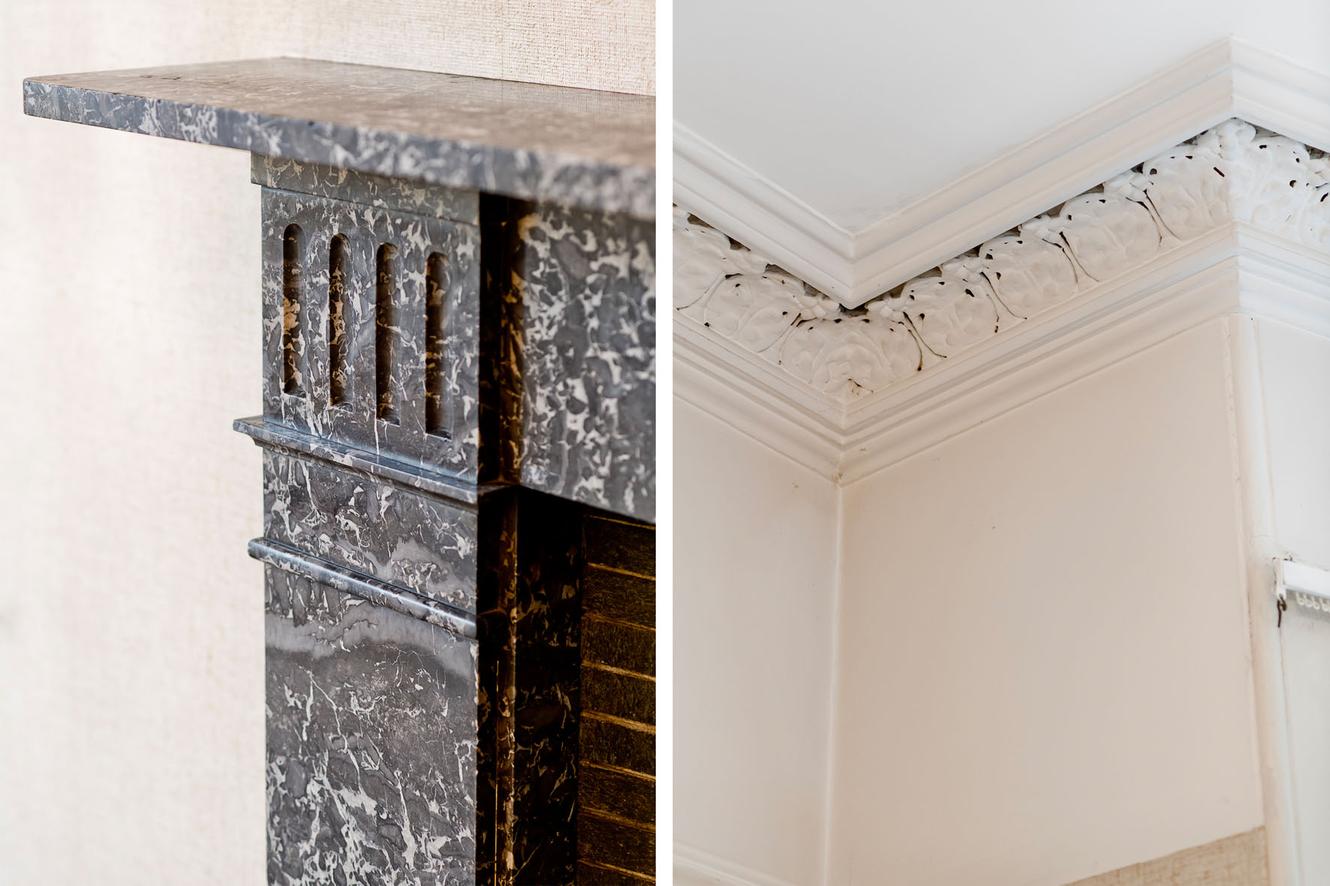 Reception rooms – Grand dimensions and a sociable flow for bringing people together. Spanning over 24 square metres, the living room is a standout space that embodies period grandeur. Its impeccably high ceiling adds to the airy effect, along with a southeast facing bay window that ensures a cascade of natural light. Further period details abound which catch the eye and bring a sense of refinement, including a picture rail, detailed cornice work, and a magnificent feature fireplace (set beside a shelved recess). French doors expand the room into the adjacent formal dining room as well, ensuring a sociable flow between the two reception areas which is perfect for lively cocktail and dinner parties.