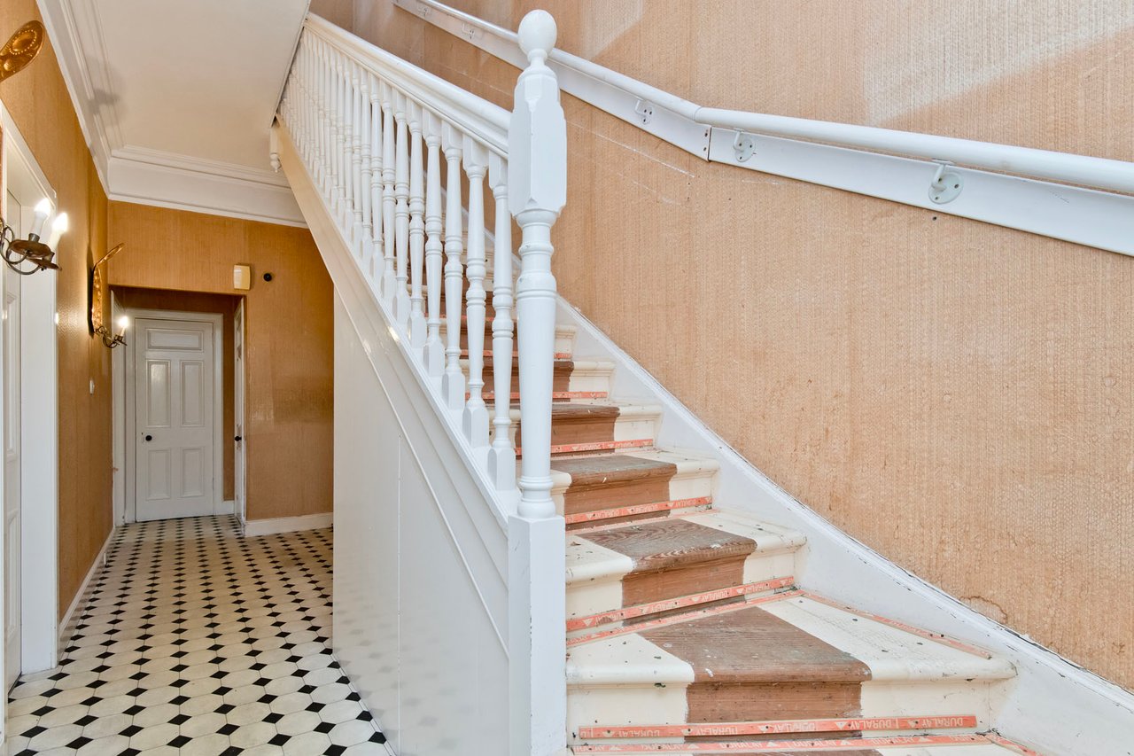 Entrance – A traditional family home distinguished by its impressive scale. The home opens with a vestibule flowing through to a reception hall, which hints at the impressive scale of the property. It offers two built-in cupboards and a store accommodating coats, shoes, and other belongings as well.