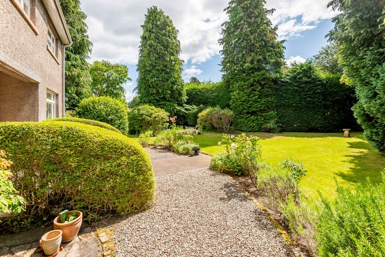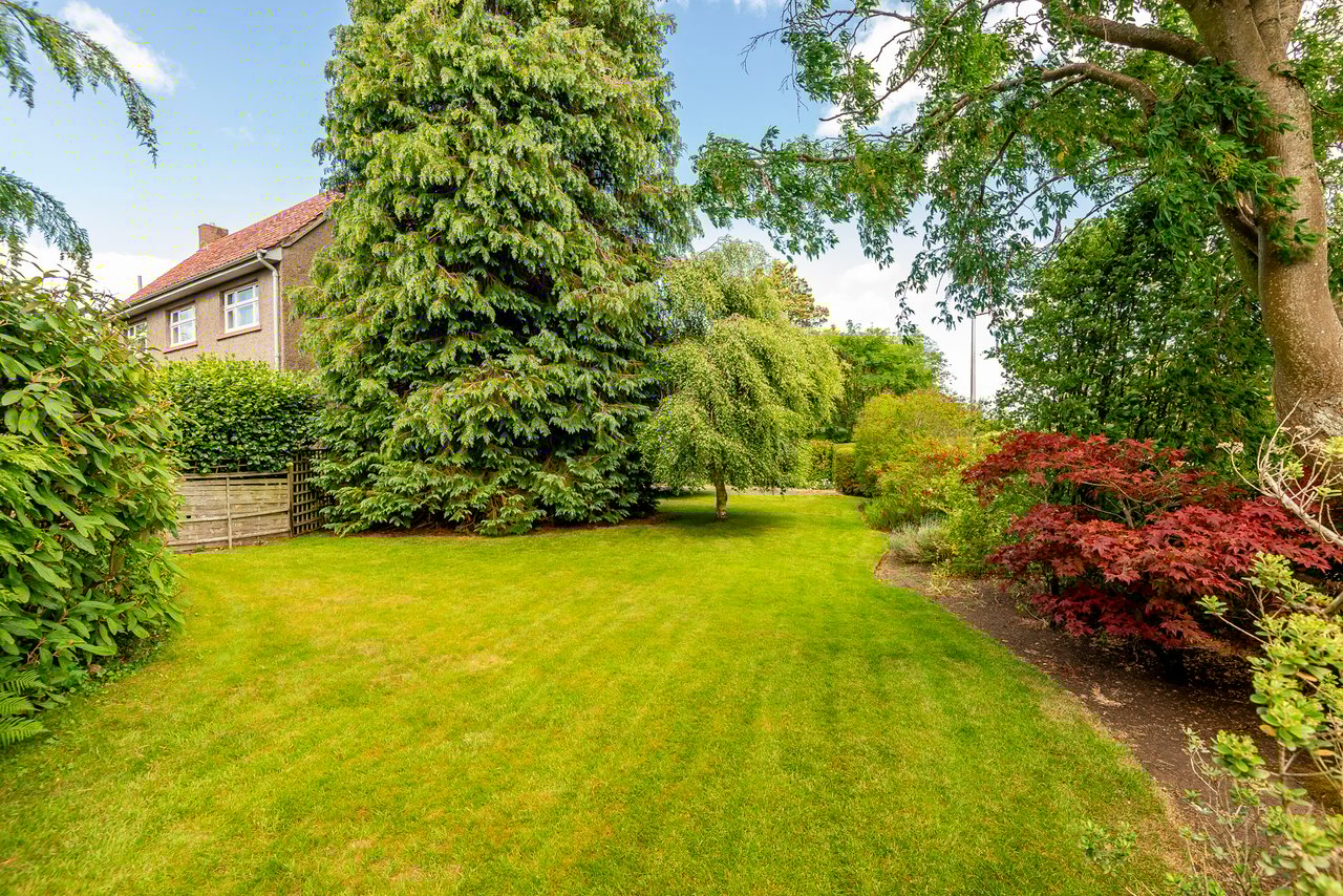 Facing south at the rear, the enclosed wraparound plot boasts idyllic gardens with manicured lawns, all sheltered by established trees, lush shrubbery, and attractive flowerbeds. These create a verdant oasis for family recreation and summer gatherings, making this residence particularly special while offering room to extend the property, STPP.