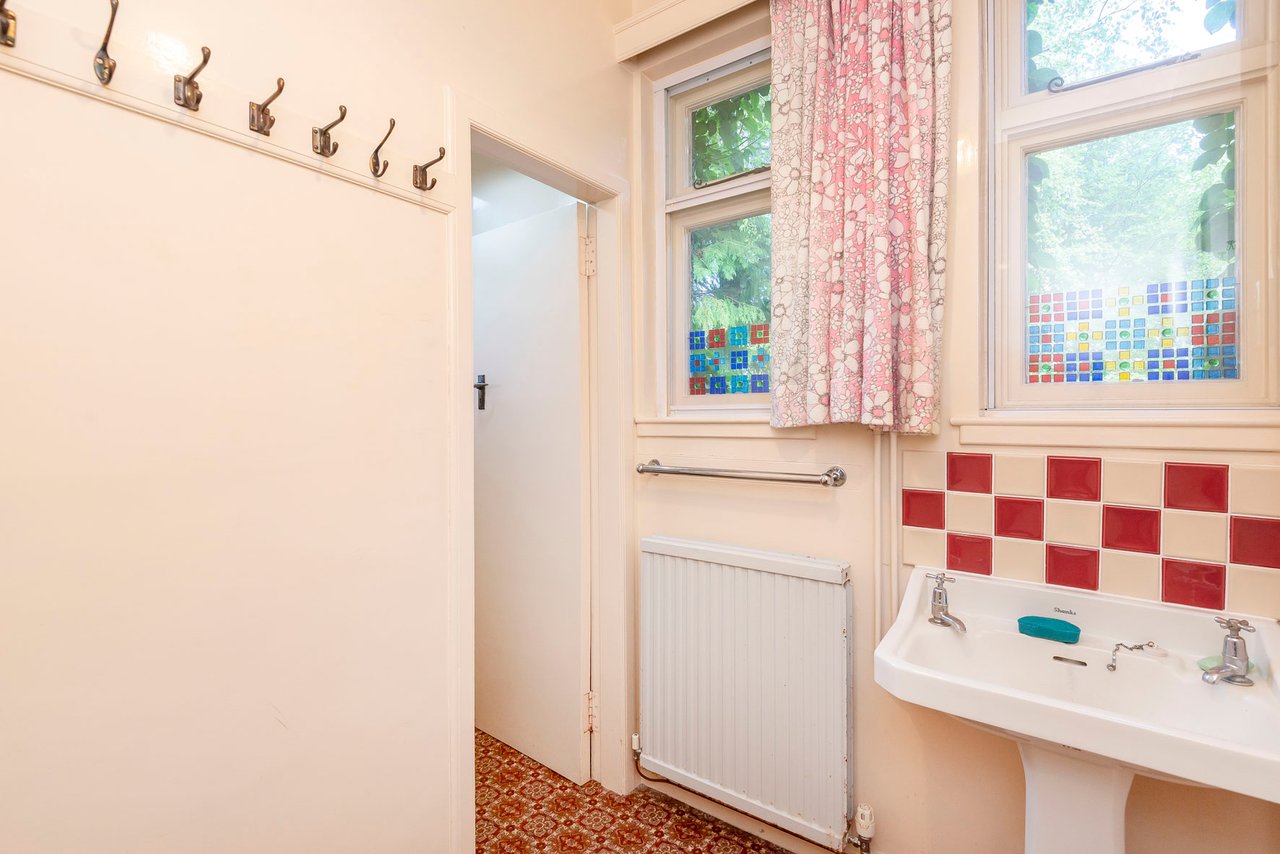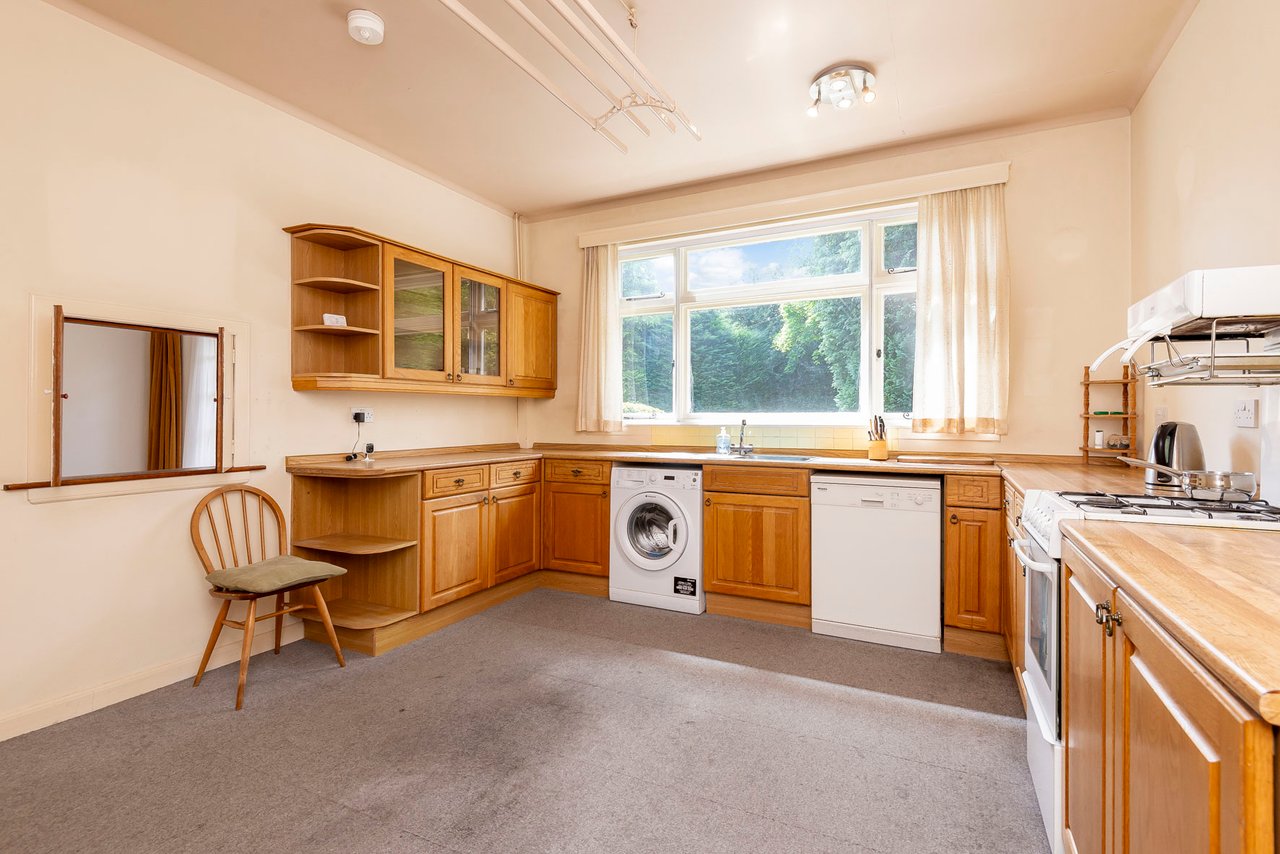 The exceptionally bright kitchen includes a seated dining zone—ideal for casual family meals—and a handy serving hatch to the dining room for effortless entertaining. While it could benefit from an upgrade, it currently offers classic wood-toned units, a generous matching worktop, and a practical layout. A selection of freestanding appliances (a gas cooker, washing machine, and dishwasher) and a traditional ceiling-hung clothes pulley are included. The garden and driveway are accessible via an attached store, providing extra storage and a perfect spot for kicking off muddy shoes after outdoor adventures!