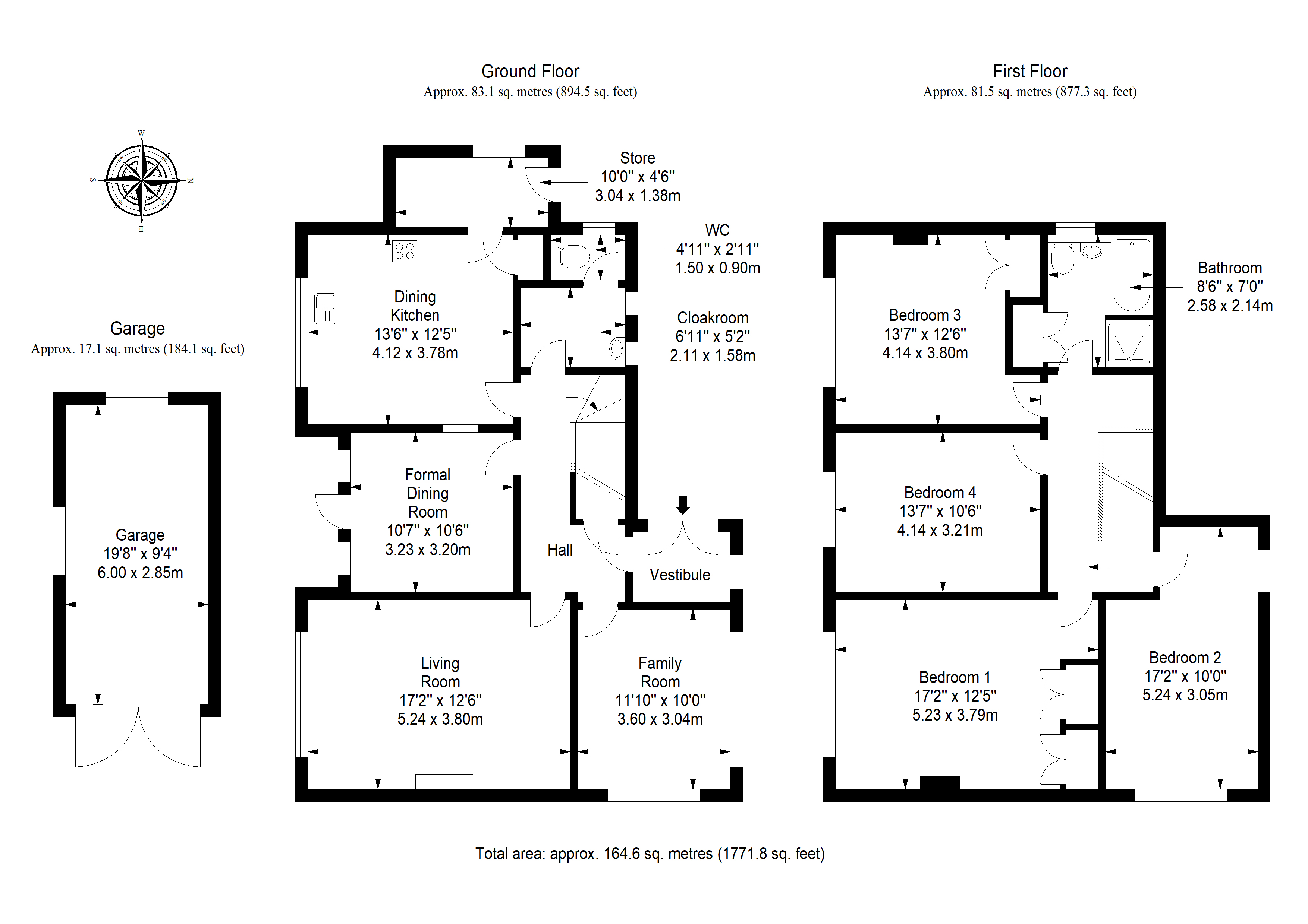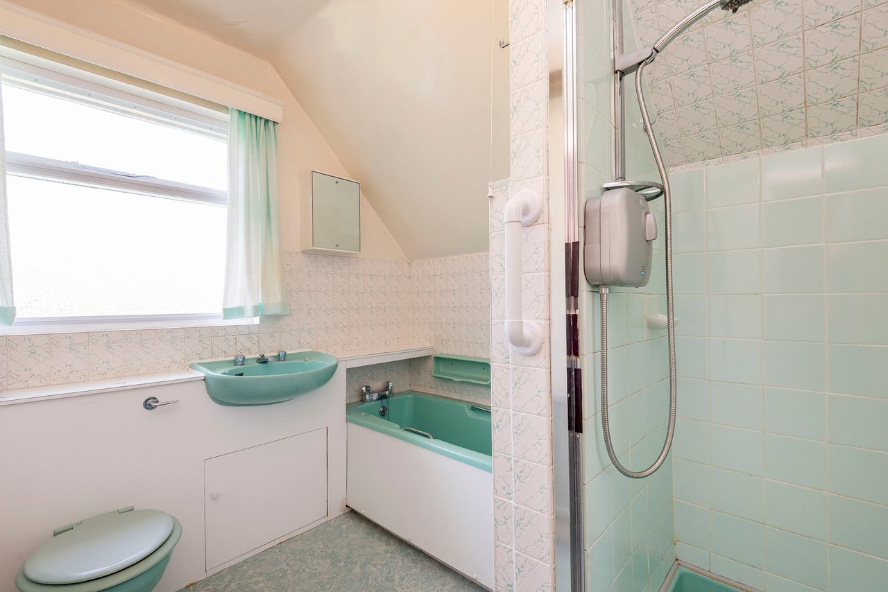 The first floor features a bright bathroom that requires modernisation but is currently fitted with a WC suite, a bath, and a separate shower. Conveniently located off the entrance hall, a cloakroom houses a WC.