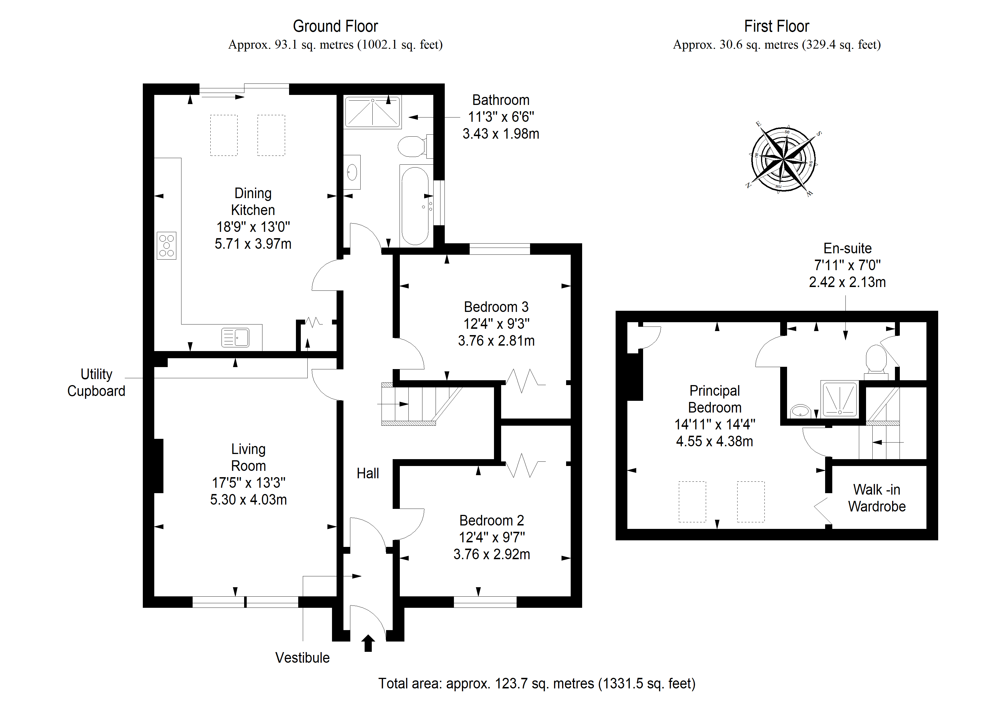 Three double bedrooms with master ensuite