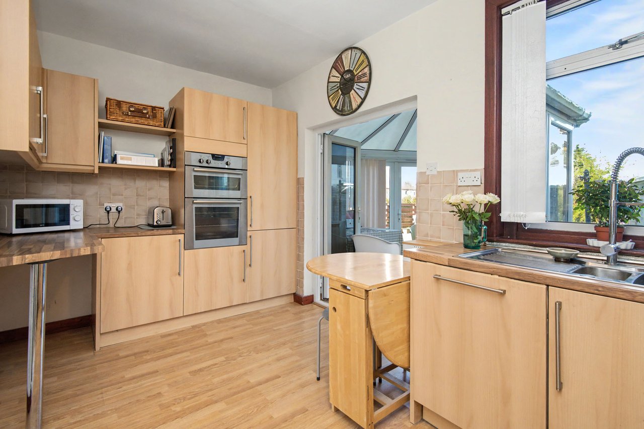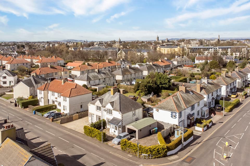 Positioned within easy reach of St Andrews’ renowned amenities, golf courses and university, and minutes from the beach, this three-bedroom semi-detached house is an appealing home for families, professionals, and watersports enthusiasts alike. It offers bright interiors with flexibility, including a south- facing living room, a breakfasting kitchen with integrated appliances, and a conservatory opening onto a generous rear garden. The principal bedroom benefits from an en-suite shower room, whilst a four-piece bathroom and additional WC add further practicality. Off-street parking is provided by an extensive gravelled driveway to the front and side of the property.