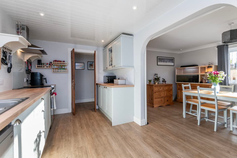 The spacious interior comprises a welcoming vestibule opening into a comfortable Hall, Living Room/Bedroom, a generous Dining Room flowing into the modern Kitchen with integrated appliances and utility space, a Shower Room, and a versatile Study / Garden Room which could be used as a home office or dressing room. Bedroom 1 is located on the ground floor, with a further bedroom and a family Bathroom on the upper level. The home benefits from bright, neutral décor and quality finishes throughout.